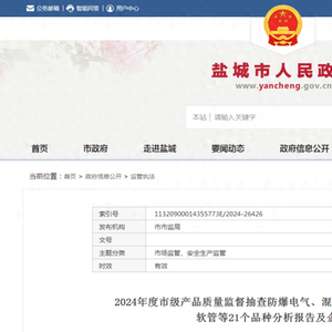 近日,江苏省盐城市市场监督管理局发布2024年度市级产品质量监督抽查防爆电气、混凝土排水管、家用燃气用软管、节水坐便器等21个品种分析报告及企业名单。