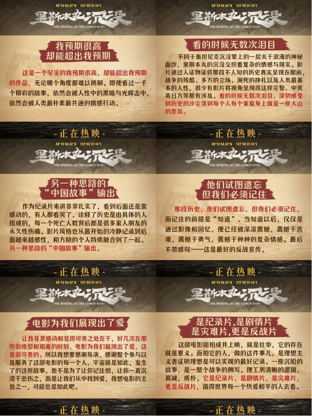 影片中,摄制组奔赴英国、日本、加拿大等地采访拍摄,并通过动画等还原里斯本丸上当时的情景等,探寻真相的过程以及一个个饱含真挚情感的真实故事,打动了很多观众,“观影过程是一层一层的震撼”,“被真实的力量触动心灵”,“很难不落泪”。