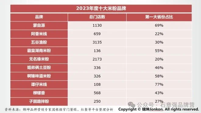 2、米粉连锁品牌整体规模偏小,区域公用品牌正抬头
