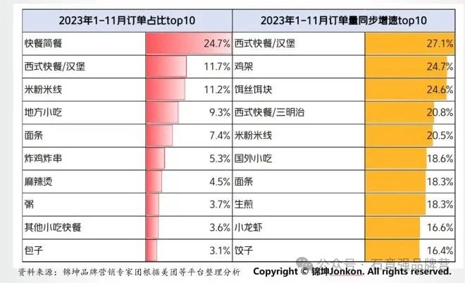 根据据美团数据显示,截至2023年11月,国内米粉米线门店超30万家,1-11月的米粉米线交易额同比增长33.2%。同时,米粉米线成为为仅次于快餐简餐和西式快餐的小吃品类,订单量年增速高于20%。
