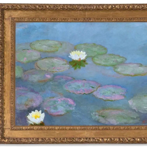 这幅《睡莲》约作于1897至1899年,莫奈定居于法国吉维尼后,以其心爱的睡莲池为主题创作了最广为人知的“睡莲”系列作品,本作即为其中最早的一组作品之一。从此以后,这一主题便贯穿莫奈一生,成为他200多幅油画的灵感来源。