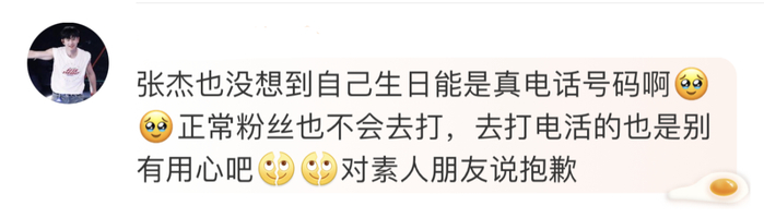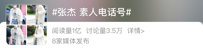 9月6日,张杰福州站演唱会上,台下有观众开玩笑称“要个电话号码”,于是张杰报了一串号码。据了解,张杰报出的手机号码前8位“19821220”正是张杰的生日。而这随口说出的号码竟真实存在。