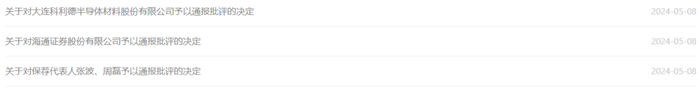 今年5月,因大连科利德半导体材料股份有限公司(下称,科利德)申报科创板上市文件中存在研发人员数量、研发投入金额造假等问题,上交所对该公司及其保荐机构海通证券、保荐代表人进行通报批评。