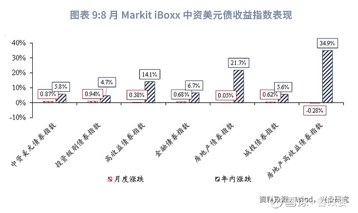 8月中资美元债发行规模环比减少、年底前金融债到期压力较大。8月中资美元债发行总规模约78亿美元,环比收缩28.3%,同比扩大49%;月内中资美元债发行以金融、城投企业为主,规模均在10亿美元以下。8月中资美元债到期偿还规模约为101.9亿美元;未来3个月预计将有约571.3亿美元债到期(不考虑提前偿还),其中金融美元债到期压力较大,主要涉及大型中资银行发行的美元长债。8月以来市场逐步形成美联储9月降息的一致预期,中美利差倒挂8月下旬以来明显收窄;后续随着流动性压力进一步释放、美元债融资需求料将逐步回暖。
