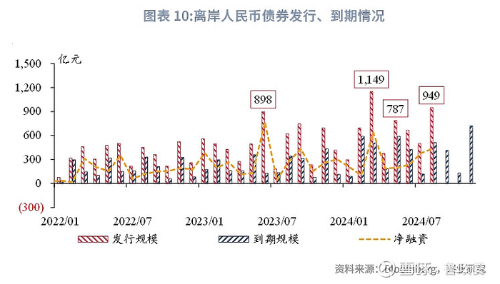 注:[1]排除同业存单的广义离岸人民币债券,除在中国香港发行的狭义点心债外,还包括在中国台湾、新加坡、卢森堡、中国澳门等地发行或上市交易的离岸人民币债券,以及在内地自贸区发行的离岸人民币债券(“明珠债”)。