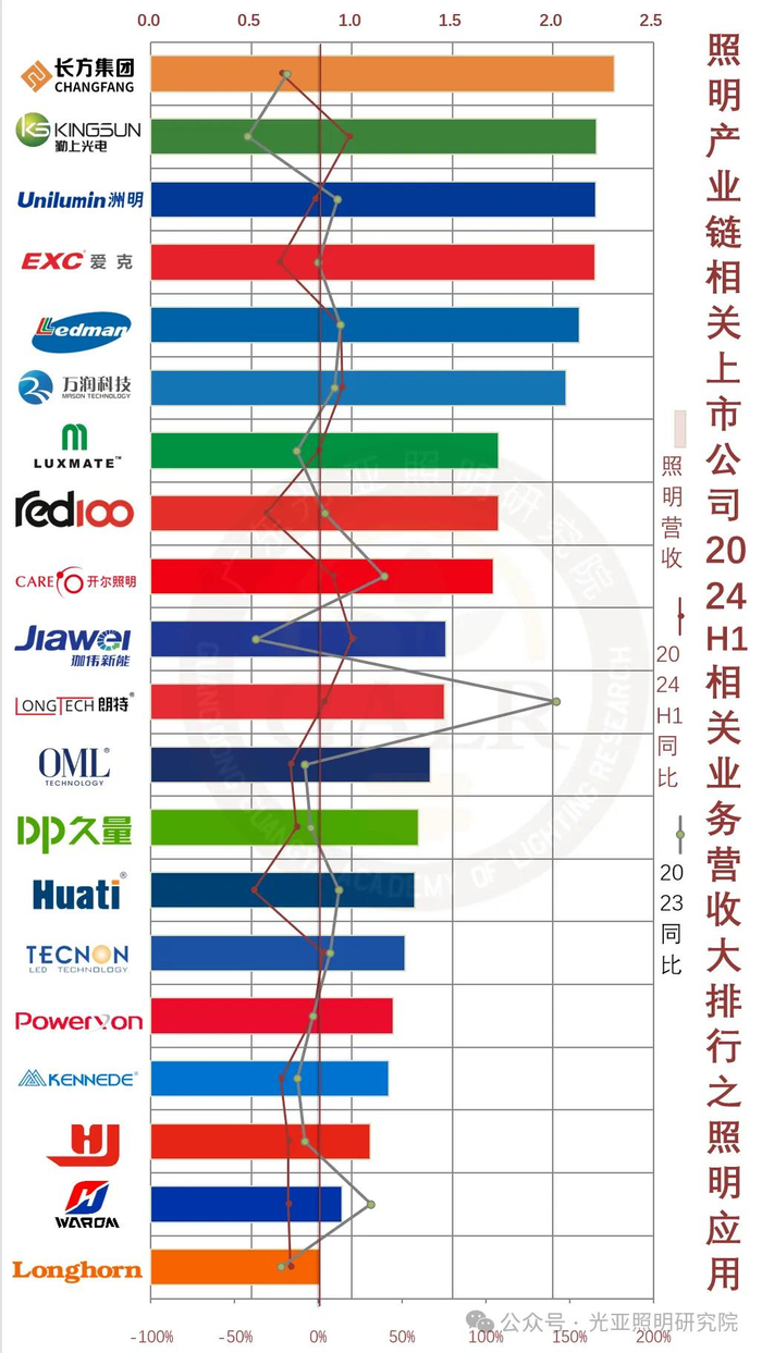 2024年上半年照明产业链相关上市公司业绩排行榜