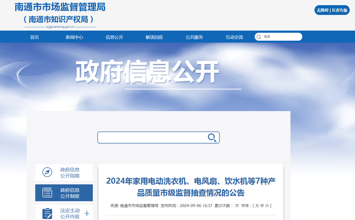 江苏省南通市市场监督管理局发布2024年家用电动洗衣机、电风扇、饮水机等7种产品质量市级监督抽查情况的公告