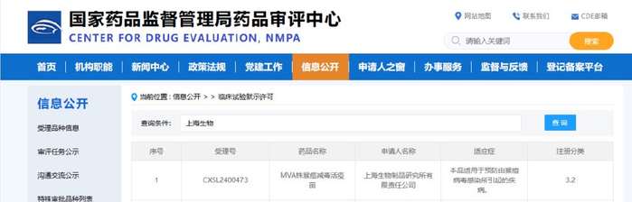 9月9日,国药集团中国生物上海生物制品研究所自主研发的MVA株猴痘减毒活疫苗获得国家药品监督管理局签发的临床试验通知书,这是我国首款获批临床的猴痘疫苗,有望在我国对猴痘病毒导致疾病的预防和控制中发挥重要作用。