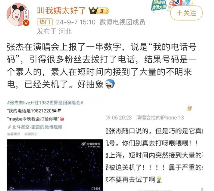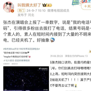 近日,有网友爆料称,张杰在演唱会上随口报的手机号码是他人真实存在的手机号。号主来自上海,由于短时间内突然接到大量陌生电话,已经被迫关机。