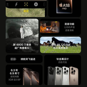 2)iPhone 16 Pro:起售999美元,搭载A18 Pro芯片、4800万像素摄像头、4k视频拍摄、首创音频混合功能。