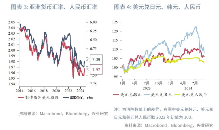 行情研判方面,美元兑人民币第三峰构筑完成,人民币汇率进入外因驱动的周期性升值,详见《日元趋势升值如何影响人民币汇率20240906》。非农数据延续了市场避险情绪,本周人民币升值幅度不及日元,后续关注美国CPI数据和联储议息能否扭转美元弱势行情。