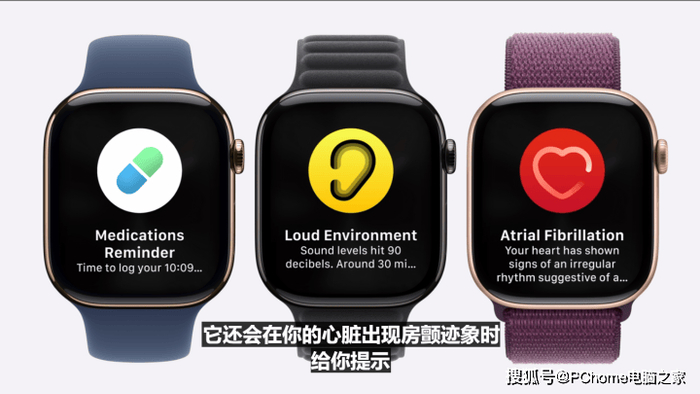 健康功能上,可提醒用户定时吃药,可在检测到房颤时给用户提示,还能通过对体温的检测,来提示女性用户排卵。