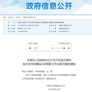 天津市加力支持消费品以旧换新工作实施方案