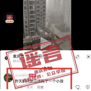 重庆强对流天气致儿童死亡?假的,造谣者已被行政处罚