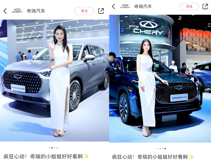 但在普通围观者眼中,她以官方模特身份出现的奇瑞旗下展台上,自然一定程度上代表了品牌形象。