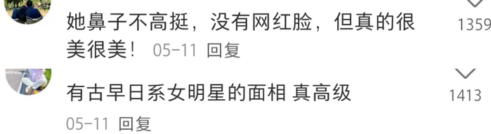 网友们夸她有“昭和感”,像早年的日本女明星,长相温和高级与英菲尼迪的气质很适配。