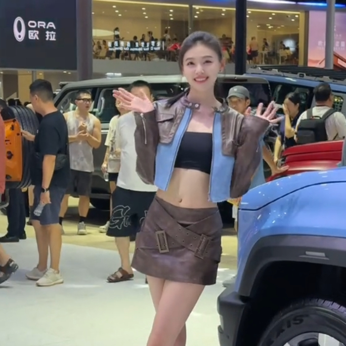 而在最近的成都车展上,这位此前被盛赞气质好的车模被奇瑞iCAR请到,一些场次中,她其实就站在引发热议的小乌苏旁边。