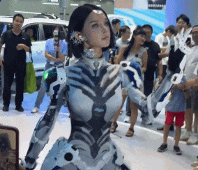 本次车展除了前文提及的小乌苏,奇瑞还请来一位机器人造型车模,并不走性感擦边路线,是抖音上一位500万的大网红@大佬甜。