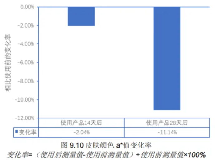色斑区域皮肤 a*值 -11.14%*