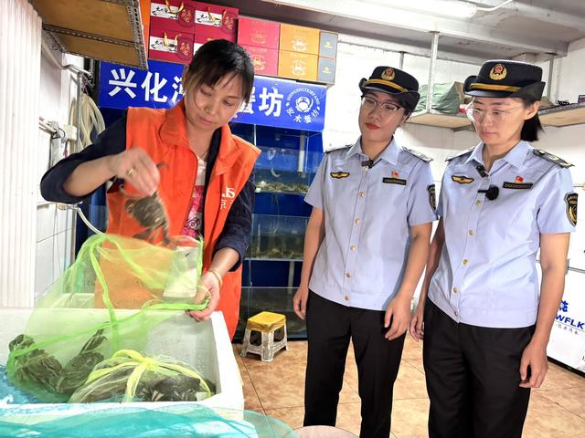 9月10日,丰台区市场监管局执法人员来到北京最大的鲜活水产品集散地京深海鲜市场进行检查。进入闸蟹区,入口公示栏处悬挂的“大闸蟹规范经营指引”上,明确标注有市场内27家大闸蟹销售企业的商户名称、摊位号、闸蟹产地、闸蟹品牌等信息。此外,指引上还特别标出了京深海鲜市场监管电话和属地市场所监管电话。