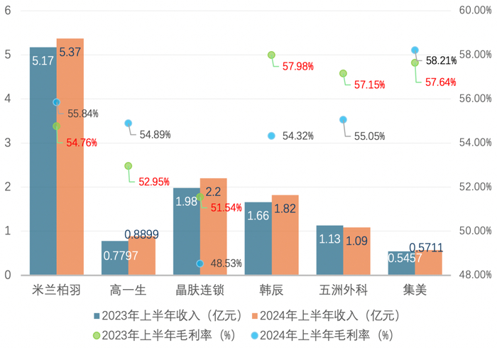 步入2024年上半年后,朗姿股份旗下医美品牌矩阵扩大至6家,其中5家品牌收入同比实现正增长,巩固了该公司在医美市场的地位。