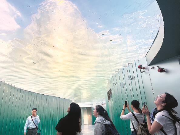 这个温室中,不仅有植物,还有动物。一座长12米、深4米、可注入300吨水的国内温室最大水草缸,如“水下森林”般展示丰富多样的鱼类,填补了国内温室展区的空白。