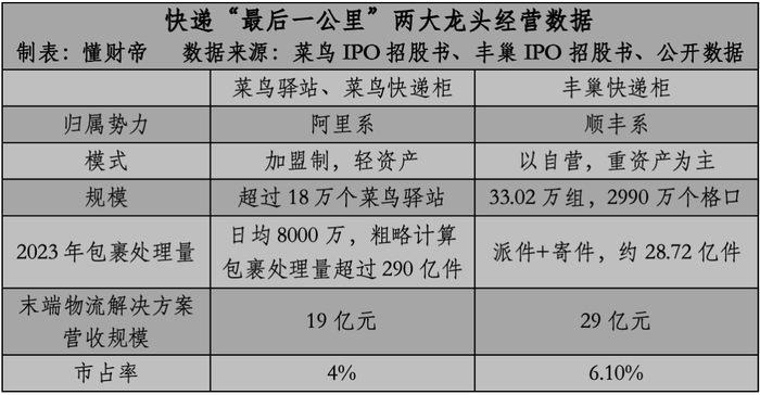 但按照收入计算,丰巢略胜一筹。招股书显示,其末端物流解决方案的营收为29亿,占据6.1%的市场占有率,位居行业第一。