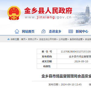 山东省金乡县市场监督管理局食品安全监督抽检信息通告(2024年第10期)