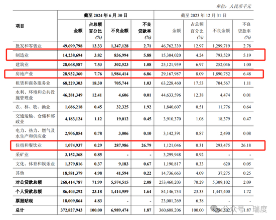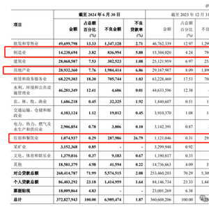 另外,郑州银行不良贷款率最高的行业为住宿和餐饮业。截至2024年6月30日,郑州银行住宿和餐饮业不良金额为2.87亿元,不良率高达26.79%。