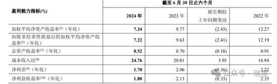郑州银行的净利差、净息差仍持续下降。2022年、2023年、2024年上半年,郑州银行净利差分别为2.22%、2.06%、1.70%,净利息收益率分别为2.35%、2.13%、1.80%。