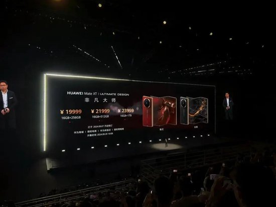 9月10日,华为发布一款三折叠屏新机——Mate XT非凡大师,和目前各大中国手机品牌均已推出的折叠屏手机相比,Mate XT非凡大师多折了一块屏,并被定位为“超高端手机”,起售价高达19999元,被称为“电子茅台”。