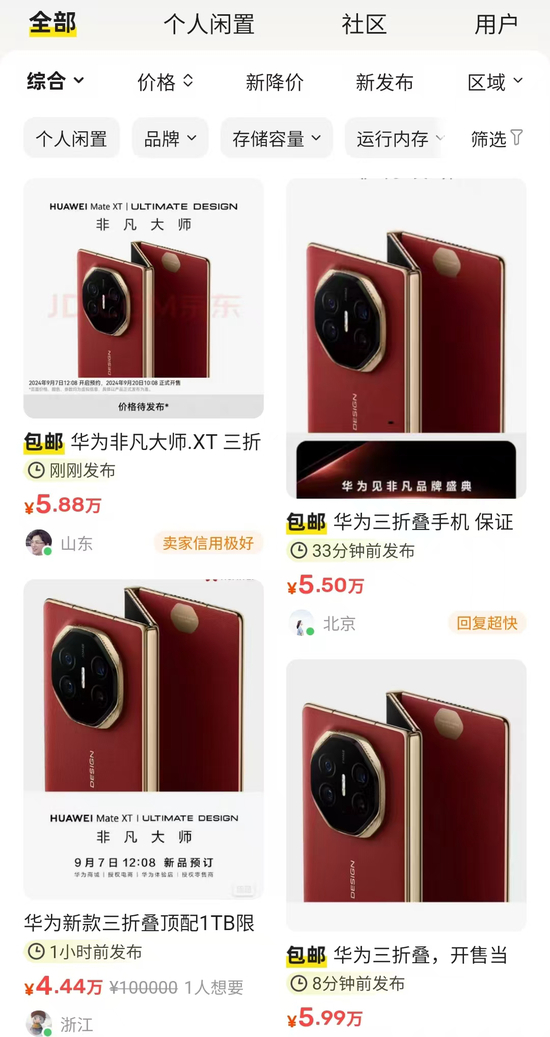 因此,Mate XT非凡大师出现看似反常的遭抢购现象实则是正常的——由于新机稀缺性和流通性极强,在上市初期本具有高溢价的能力。
