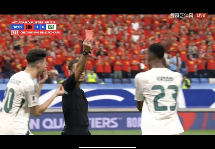 有戏了?国足进球!沙特被红牌罚下一人