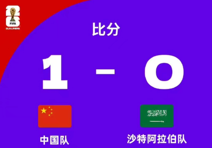2026年世界杯预选赛亚洲区第三阶段C组第2轮,中国队对沙特阿拉伯队比赛今晚打响。第14分钟,中国队球员蒋圣龙头球造成对方乌龙,场上比分1-0。