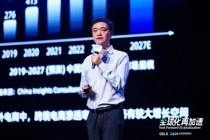 菜鸟集团副总裁、国际供应链及北美大区总经理赵剑以《北美新质快递,携手创新共赢》为主题发表演讲。他认为,随着TikTok shop、SHEIN、Temu和速卖通为代表的中国跨境电商平台加速出海,中国快递公司也在北美电商市场上扮演着愈来愈重要的角色。