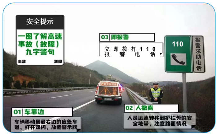 遇突发情况时,“车靠边、人撤离、即报警”,也可拨打96777、12328客服热线求助。交警人员到达现场前,要在故障车后方摆放警示标志,切勿在高速路面上随意走动。