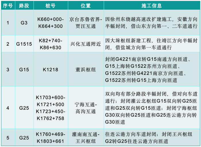 施工路段——10处施工路段节点封闭或借道