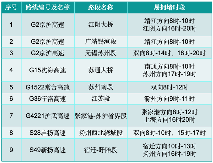 省内跨市出行、跨省出行将会显著增加,过江、省界流量较平日增长明显;