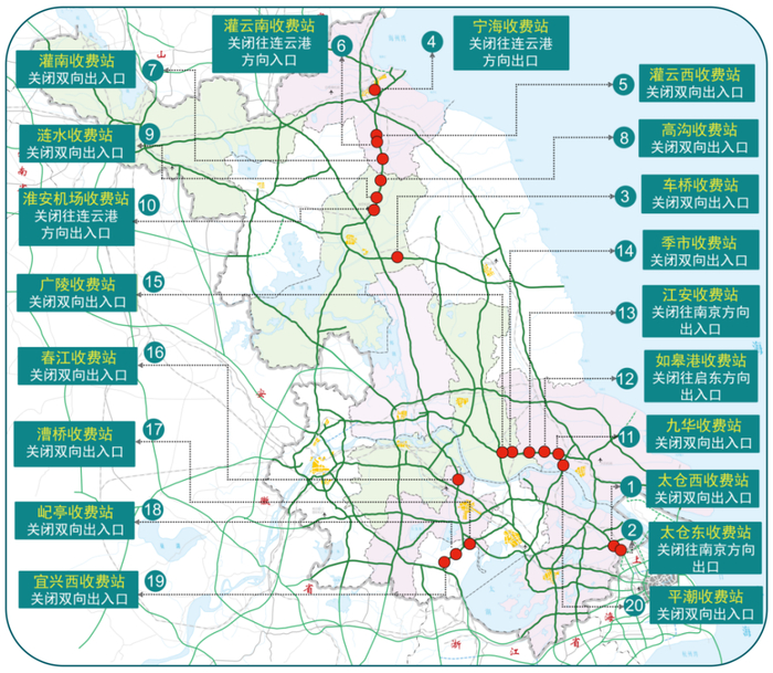 收费站关闭——20个收费站临时关闭
