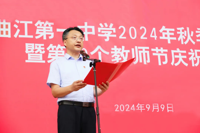 阳光讯(记者 张晶)9月9日上午,西安市曲江第一中学在学校操场举行2024年秋季学期开学典礼暨第40个教师节庆祝大会。