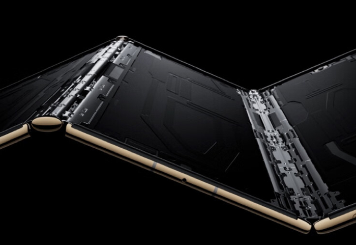 据介绍,该机展开为10.2英寸的屏幕,为全球屏幕面积最大的折叠屏手机,同时仅有3.6毫米厚,该机器配备了华为天工铰链系统,实现双轨联动,第一次实现内外弯折。机身内电池为业界最薄,仅有 1.9mm,三块电池等效 5600 毫安时容量,支持 66W 有线快充和 50W 无线快充。