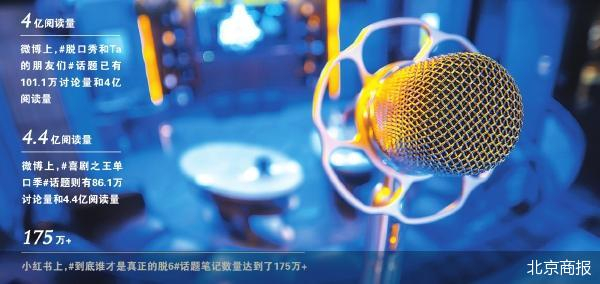 目前,微博上,#脱口秀和Ta的朋友们#话题已有101.1万讨论量和4亿阅读量,#喜剧之王单口季#话题则有86.1万讨论量和4.4亿阅读量。小红书上,#到底谁才是真正的脱6(《脱口秀大会》第六季)#话题笔记数量更是达到了175万+。