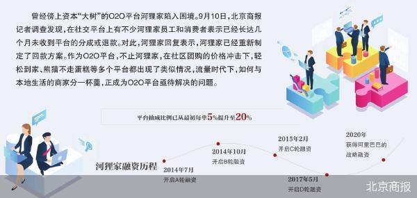 曾经傍上资本“大树”的O2O平台河狸家陷入困境。9月10日,北京商报记者调查发现,在社交平台上有不少河狸家员工和消费者表示已经长达几个月未收到平台的分成或退款。对此,河狸家回复表示,河狸家已经重新制定了回款方案。作为O2O平台,不止河狸家,在社区团购的价格冲击下,轻松到家、熊猫不走蛋糕等多个平台都出现了类似情况,流量时代下,如何与本地生活的商家分一杯羹,正成为O2O平台亟待解决的问题。