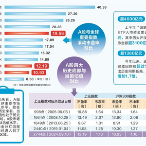 横向来看,A股估值在全球主要市场也处于偏低水平,沪深300指数、上证指数在全球重要指数市盈率和市净率中均处于相对低估状态,两大指数市盈率不到美股三大股指的一半;市净率不足美股三大股指的四分之一。