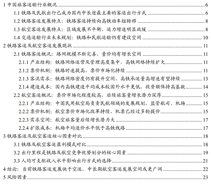 5、核心结论:当前铁路客运发展快于空运,中长期航空客运发展空间或更广阔