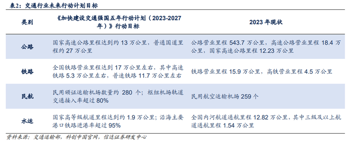 我国交通运输网络建设已较为完善,未来针对不同运输方式设定了相应建设目标,铁路和民航运输仍有发展空间。