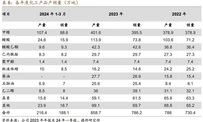 公司是国内唯一一家同时掌握低温费托合成和高温费托合成技术的企业,拥有煤气化、煤液化等多条完整煤化工产业链,产品以甲醇、乙二醇、醋酸、己内酰胺、煤制油为主,其中甲醇协同产销量全国第一,醋酸产能位居行业前三,己内酰胺进入聚酯行业高速纺领域,聚甲醛产品跻身国内一流产品序列,115℃精制费托蜡成功进军国际高端市场,打破国外垄断。