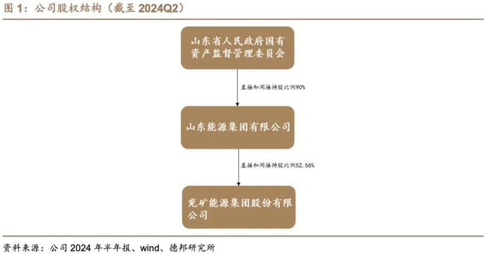 响应国家综合发展战略,集团实现合并重组。2020年8月,公司控股股东兖矿集团与原山东能源集团联合重组方案获批,合并完成后,集团作为存续主体,将承接原山东能源集团资产、负债、业务等一切权利与义务。2020年9月,公司与兖矿集团签署《股权及资产转让协议》,以现金184亿元收购控股股东相关煤炭、电力和煤化工资产,实现对集团下属煤化工板块业务整合。2021年3月,兖矿集团正式更名为山东能源集团有限公司,截至 2024Q2,山东能源直接持有公司股权52.56%,为公司控股股东,公司实际控制人为山东省人民政府国资委。