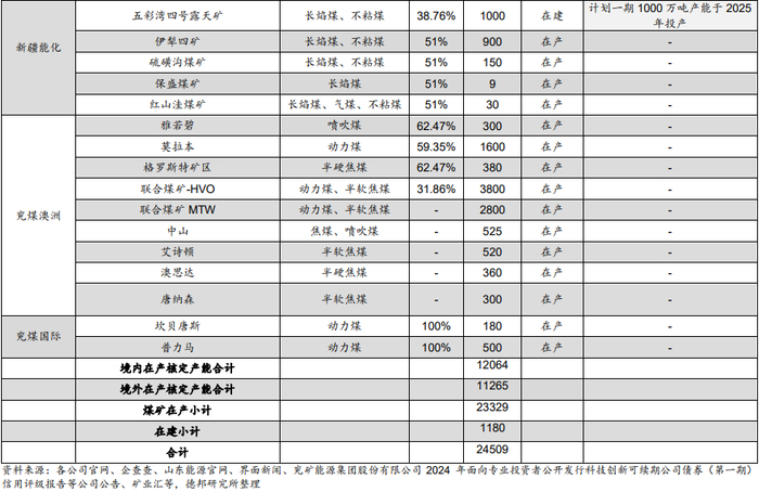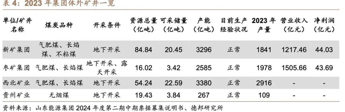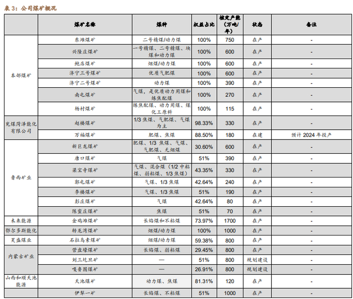 截至2023年,集团除兖矿能源所属矿井外,还拥有煤炭资源储量175亿吨,可采储量达50亿吨,核定产能达9528万吨,且集团还拥有3对未上市在建矿井,设计产能合计 1400 万吨。