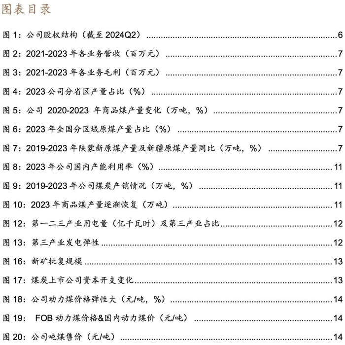 1.以煤为基,一体化布局的全球能源龙头2. 聚焦核心主业,打造国内海外双轮驱动2.1. 聚焦煤炭主业,能源产区重心西移2.2“内生+外延"增长强劲,中长期发展战咯清晰2.2.1.收购新疆能化&音西矿业,产能快速增长2.2.2.在建项目投产在即,产能利用率仍有增长空间2.2.3.集团煤炭资源丰富,煤质优异3. 公司煤价弹性较大,上行周期有望迎来量价齐升3.1. 需求向好趋势不改,煤价中枢有望上移3.2. 公司煤价弹性较大,上行周期下充分受益4.产业延伸谋转型,聚焦高端化工新材料4.1. 短期油价震荡偏强,煤化工有望边际复苏4.2. 短期油价震荡偏强,煤化工有望边际复苏5.公司经营稳定,现金分红优异6.盈利预测与估值6.1 盈利预测6.2 估值评级7.风险提示